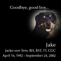 The Candle Ceremony takes place in the site's chatroom, and offline all over the world as well, at 10:00pm Eastern time. I will be lighting a candle for Jake (and General, Hobbes, Pinkie, Cyler, Umbro, Ira and Otto ... we've lost way too many special friends this summer) tonight.